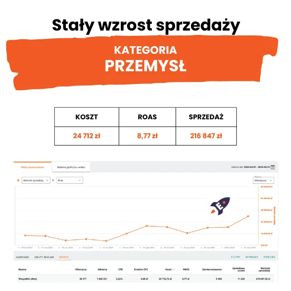 Na bieżąco analizuję skuteczność działań – śledzę zasięg ofert, wskaźniki kliknięć, konwersję oraz wpływ reklam na widoczność marki. Dostosowuję strategię tak, aby produkty Twojej marki zyskiwały coraz większą rozpoznawalność.