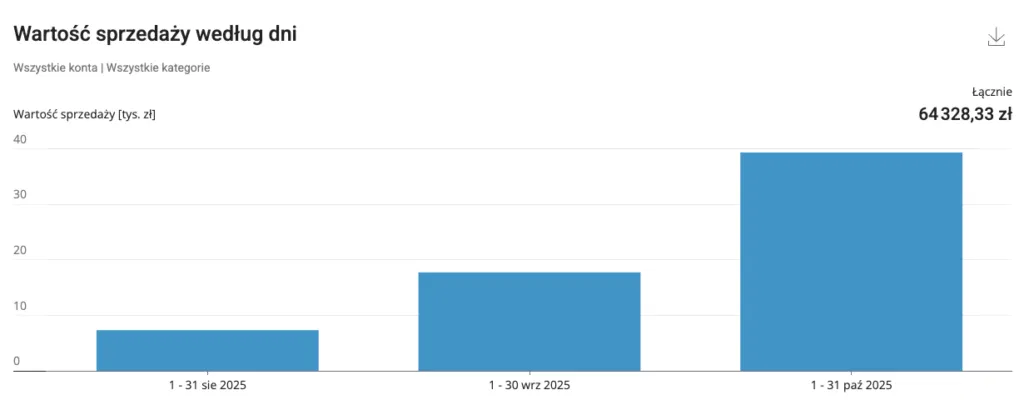 W ciągu trzech miesięcy od uruchomienia, od sierpnia do października, konto wygenerowało 40 000 zł miesięcznego obrotu.