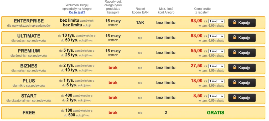 Dostęp do aktualnych danych rynkowych daje przewagę nad konkurencją i pozwala dostosować ofertę do realnych potrzeb kupujących. Możesz optymalizować ceny, analizować słowa kluczowe i skuteczniej zarządzać swoimi aukcjami.
